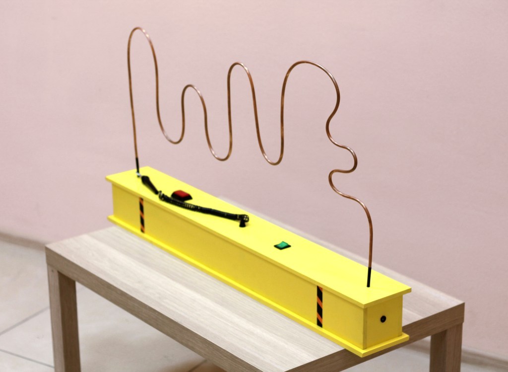 Цель игры состоит в том, чтобы провести петлю, закрепленную на ручке, через металлический лабиринт и при этом не коснуться его.