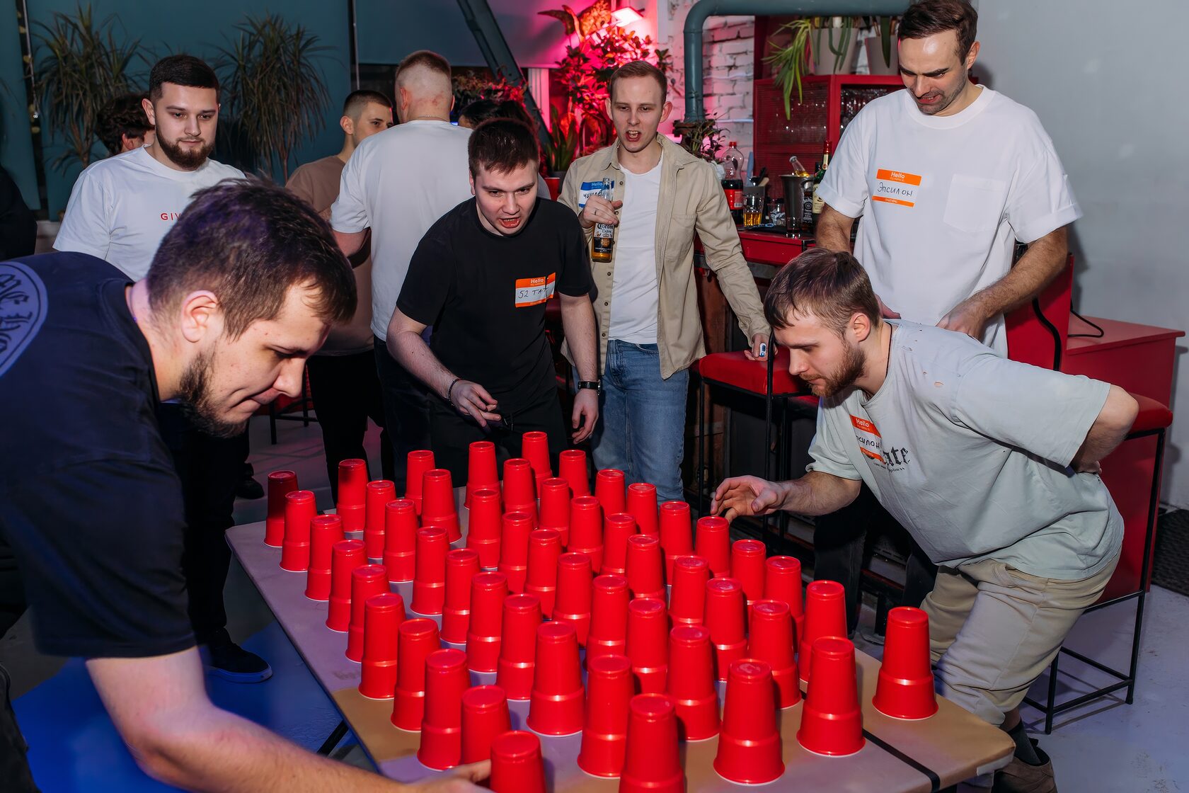 Началось всё с идеи устроить что-то вроде чемпионата: подвижные игры, немного американской вайбовой эстетики (да, те самые красные стаканчики, шарики от пинг-понга, шум, смех, драйв). Мы начали собирать конкурсы, скидывать видосы, спорить, что брать, что выкинуть, закупили реквизит и — внимание — всё это протестили сами.