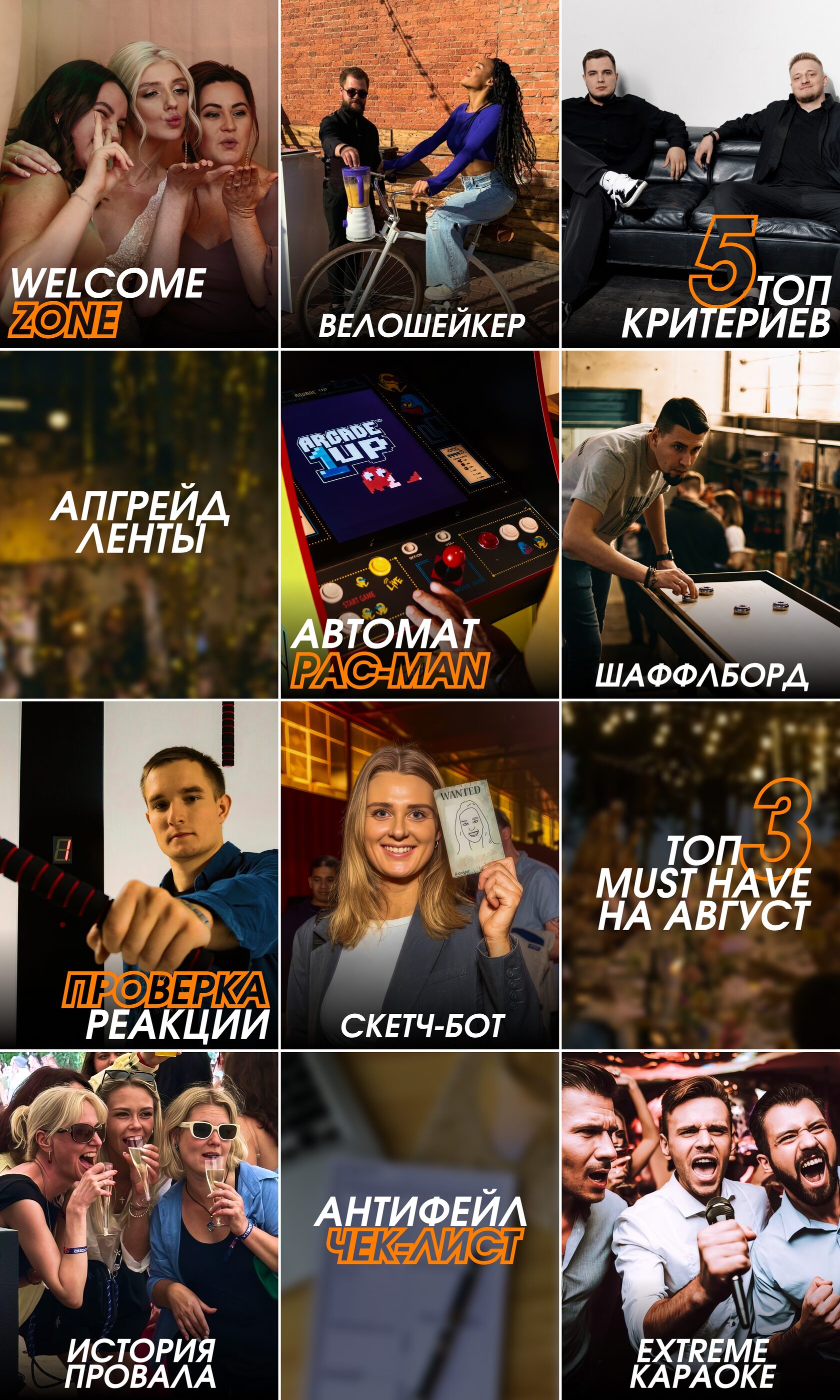 Интерактив — это внимание к деталям. Это эмоции гостей. Это способ сказать о бренде без слов. Это маленькое шоу внутри вашего большого события. И в новом визуале мы хотим передать именно это.