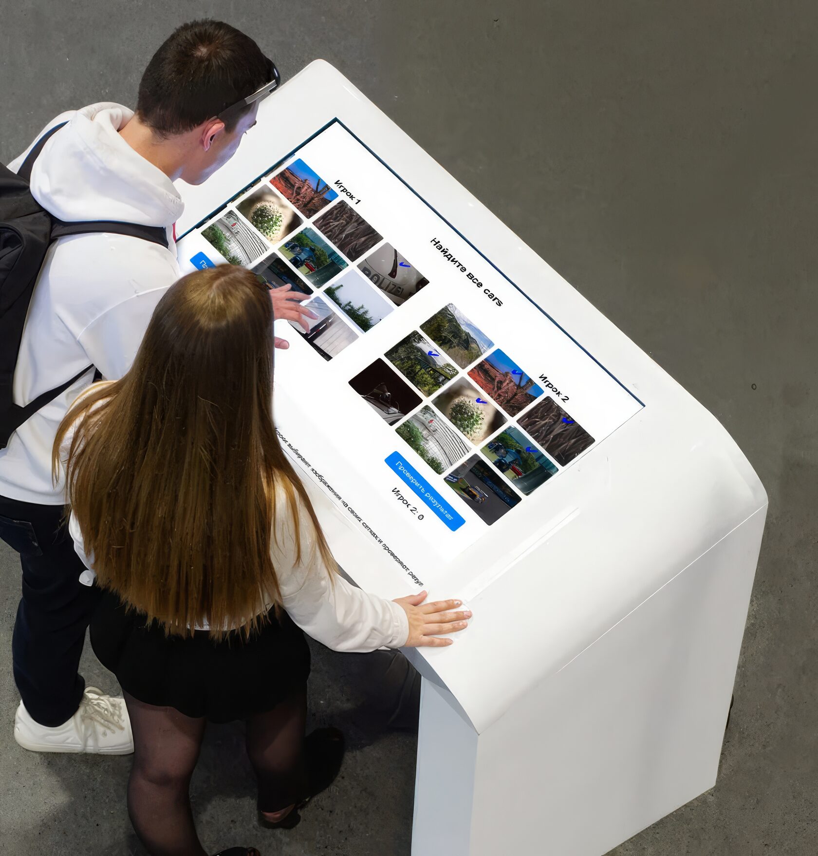 Игроки выбирают картинки с помощью кнопок на игровой панели или сенсорного стола.