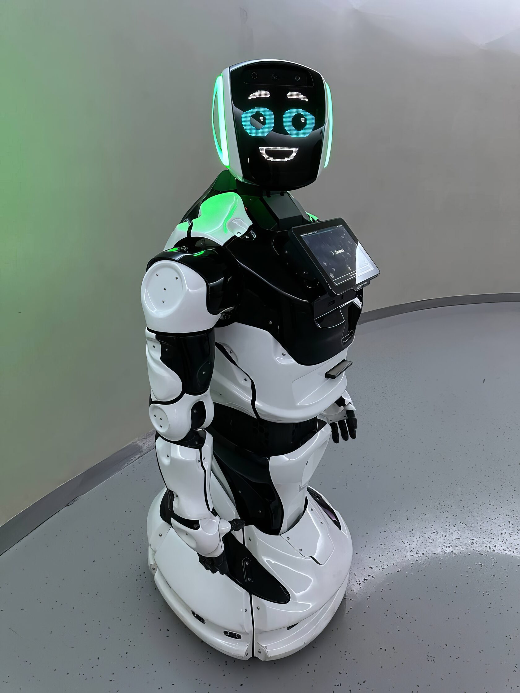 Он выглядит как герой из sci-fi фильма, двигается сам, распознаёт лица, отвечает на вопросы, а ещё может рассказать о вашем продукте так, что даже бабушка поймёт. У него внутри голосовой помощник, экран с сенсором, камеры и база знаний, которую можно настроить под конкретное событие. Его реально можно «натренировать» под любое ТЗ — от презентации на форуме до интерактива в торговом центре. И, кстати, да, он действительно милый. Настолько, что гости сами просятся с ним на селфи.